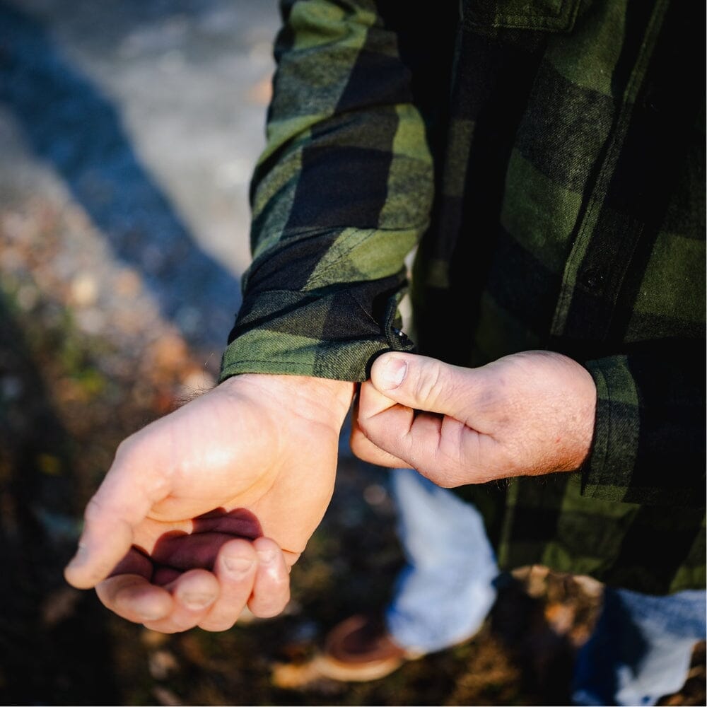 Only 500 made for this years collection with each flannel marked with "Earned Not Given" etchings on the interior tag . These flannels are a medium weight cotton poly blend and only get softer with every wash.